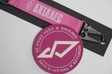 Тканинний брелок «АХІЛЛЕС» рожевого кольору з металевим кільцем для кріплення ключів. Брелок оснащений карабіном. Знак полку «АХІЛЛЕС» – золотий спис, який символізує прагнення до мети, враження цілі, першість на полі бою та у технологічному розвитку. Зображення спису нагадує смолоскип та знак нескінченності, що спрямований у небо.